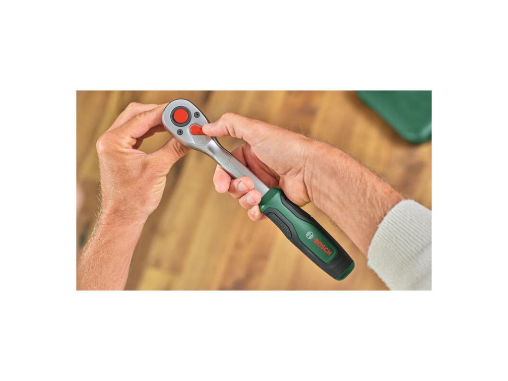 Potrebujete uvoľniť koleso na aute alebo dotiahnuť veľkú konštrukciu? Račňa Bosch 1/2" je nástroj pre ťažkú váhu. Znesie extrémny krútiaci moment až 768 Nm, čo je viac, než bežne dokážete vyvinúť rukou. Napriek svojej sile si zachováva jemnosť vďaka 72-zubovému mechanizmu.