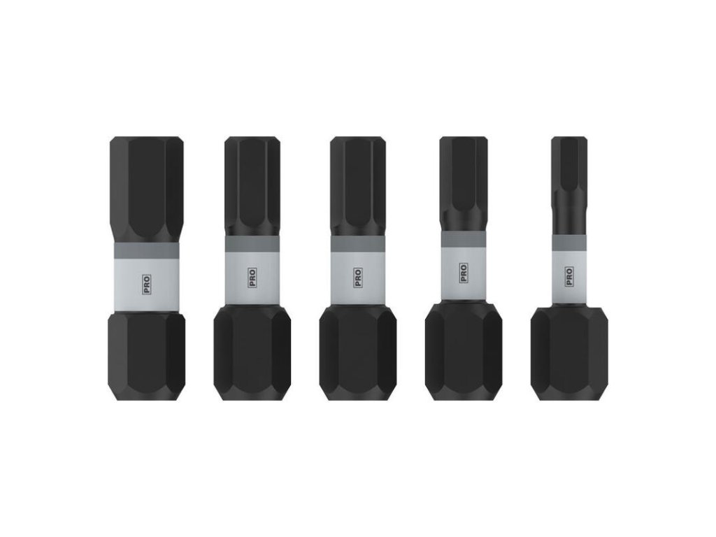 Kompletná sada najpoužívanejších šesťhranných (imbus) bitov v odolnom prevedení PRO Impact. Tieto bity sú ideálne pre montáž nábytku a strojných zariadení pomocou rázových uťahovačov. Tepelne upravená oceľ zaručuje, že sa hrany bitu nezaoblia ani pri vysokom tlaku.