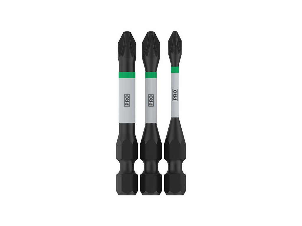 Praktická sada obsahujúca všetky tri hlavné veľkosti Pozidriv. Bity PRO Impact sú vybavené torznou zónou, ktorá pohlcuje energiu rázov a chráni bit pred zlomením. Farebné krúžky umožňujú rýchlu identifikáciu správnej veľkosti.