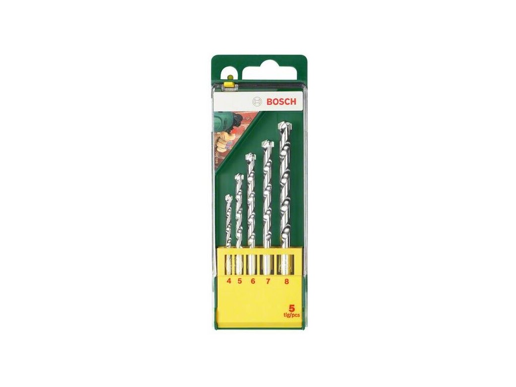 Pre bežné vŕtanie hmoždiniek v domácnosti. Táto 5-dielna sada vrtákov Bosch obsahuje najpoužívanejšie priemery (4, 5, 6, 7, 8 mm) pre vŕtanie do muriva, vápennopieskových tehál a prírodného kameňa. Vrtáky majú valcovú stopku a karbidový hrot odolný voči nárazom.