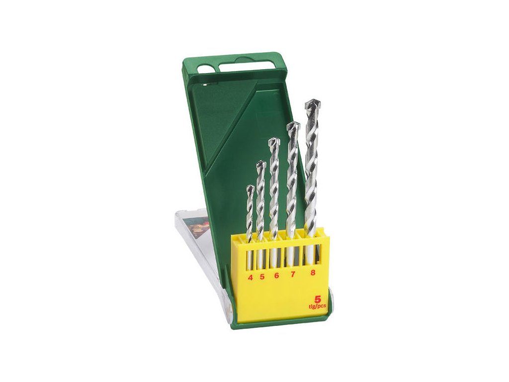 | Obsah: | 5 vrtákov do muriva, Ø 4/5/6/7/8 mm |
