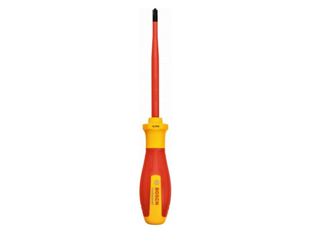Skrutkovač Skrutkovač VDE SL/PH 2 × 125, Profesionálni remeselníci potrebujú náradie, ktoré sa ľahko používa a spĺňa všetky legislatívne požiadavky. Skrutkovač Bosch Professional SL/PH 2 × 125 umožňuje uťahovanie a uvoľňovanie skrutiek, a to aj keď dôjde k nečakanému kontaktu s komponentmi pod napätím. Toto náradie spĺňajúce požiadavky noriem je izolované termoplastickým elastomérom (TPE). Toto náradie bolo testované až do 10 000 V a disponuje certifikáciou VDE až do 1 000 V podľa normy DIN EN/IEC 60900. Náš skrutkovač VDE je presný a odolný; jeho štíhly driek a odolný hrot zaručujú presnú montáž. Mäkký úchop a vynikajúca ergonomická konštrukcia poskytujú komfort ruke používateľa a umožňujú komfortnú pácu. Driek skrutkovača z ocele S2 má izolovaný ochranný povlak a rukoväť je izolovaná TPE. Vďaka ručnému náradiu VDE pridanému do nášho radu Bosch Professional získavate náradie spoľahlivej kvality Bosch, ktoré spĺňa vaše požiadavky. Skrutkovače Bosch Professional VDE majú antirolovaciu konštrukciu, ktorá zabraňuje, aby sa odkotúľali z miesta práce. Navyše profil a veľkosť sú zreteľné viditeľné na viacerých pozíciách na rukoväti.