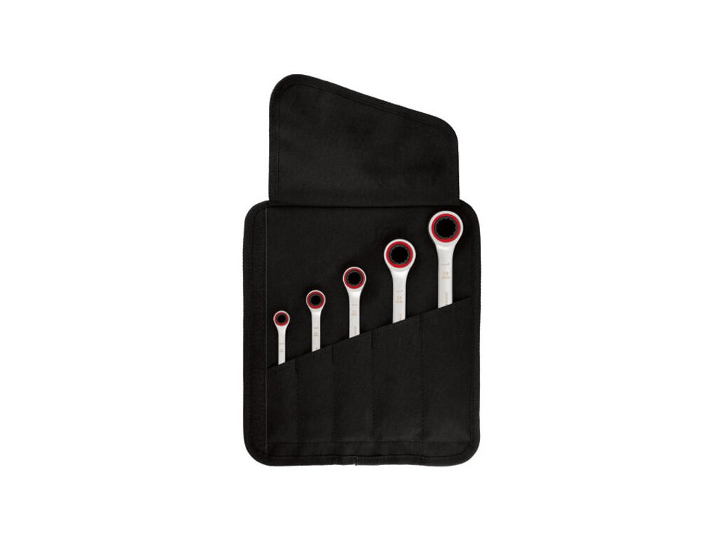 Päť kľúčov, ktoré použijete najčastejšie, teraz v prémiovom prevedení. Táto sada račňových kľúčov Bosch obsahuje veľkosti 8, 10, 13, 17 a 19 mm, ktoré pokryjú väčšinu skrutiek v aute či domácnosti. Račňový mechanizmus integrovaný v očku má 72 zubov, čo umožňuje prácu aj v stiesnených priestoroch s malým uhlom pootočenia (iba 5°), kde by ste s bežným kľúčom neuspeli.