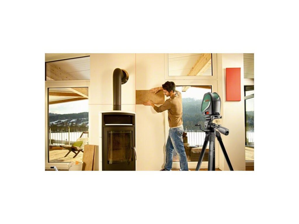 Krížový čiarový laser UniversalLevel 3; Perfektný na renovačné, dekoračné a údržbové práce; Projekcia laserového kríža s ďalšou vertikálnou líniou s uhlom 90° a kolmicou; Laserové body a línie sa automaticky zarovnávajú a sú priame vďaka samonivelačnej funkcii; Funkcia sklonu na prácu mimo samonivelačného rozsahu s diagonálnymi laserovými líniami; Vysokokvalitné, jasné laserové diódy s presnosťou ±0,5 mm/m na presné pracovné výsledky; Uhol apertúry 120° na dlhé laserové línie aj na krátke pracovné vzdialenosti; Náradie podporuje trvalú udržateľnosť, viac podrobností nájdete nižšie; 3× batéria 1,5 V LR6 (AA); Mäkký vak; V škatuli
