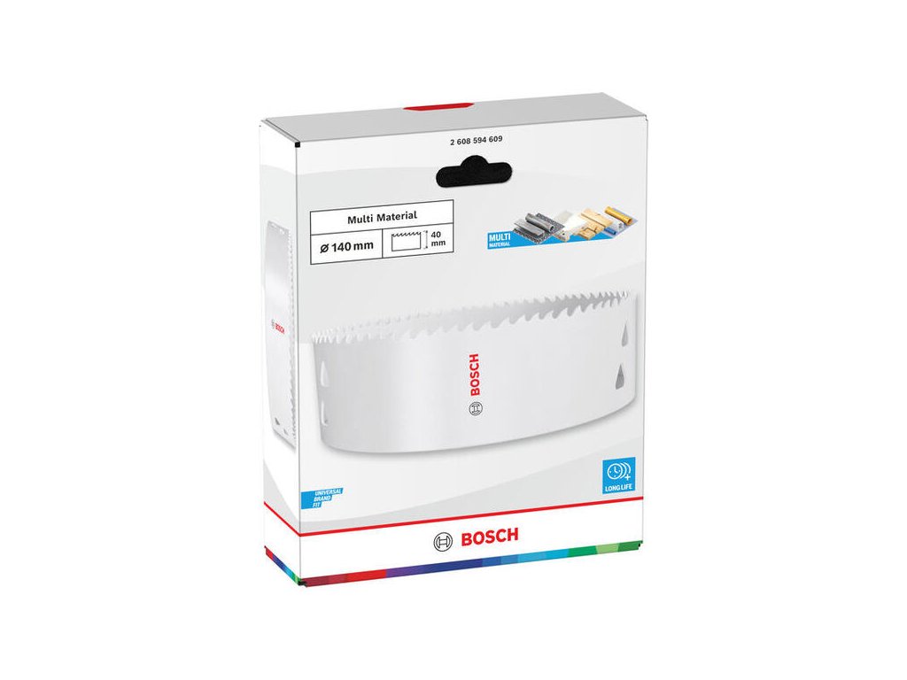 - 1x Bimetalová dierovka Bosch Multi 140 mm