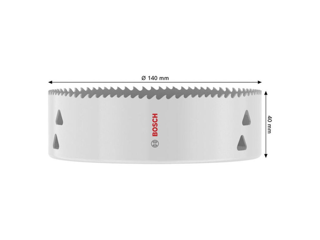 Pre skutočne veľké prestupy je určená bimetalová dierovka Bosch s priemerom 140 mm. Tento nástroj zvláda náročné úlohy na stavbe, ako je vŕtanie do drevených konštrukcií alebo sadrokartónových stien pre vzduchotechniku.