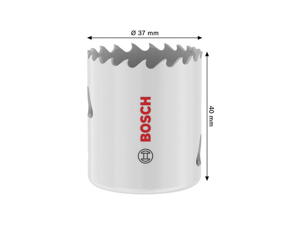 Dierovka Bosch s priemerom 37 mm je spoľahlivým nástrojom pre vytváranie otvorov v rôznorodých materiáloch. Bimetalové telo kombinuje tvrdosť zubov pre rezanie kovu s pružnosťou potrebnou pre drevo a plasty.