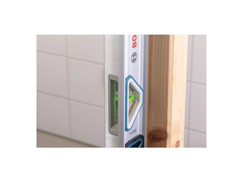 Optický nivelačný prístroj Vodováha, 60 cm, Vodováha dĺžky 60 cm je vybavená blokovými libelami, koncovými krytmi odolnými proti nárazom a pevným hliníkovým telom, ktoré zvládne vysoké namáhanie a zaručuje dlhú životnosť na pracovisku. Protišmykové koncové kryty pomáhajú zabrániť akýmkoľvek nezrovnalostiam pri odčítavaní a poskytujú vyššiu stabilitu pri práci. Vodováha je vybavená zväčšovacími stredovými libelami, kvapalinou v libelách odolnou proti UV žiareniu a kovovými prstencami libiel, čo umožňuje presnú a dlhodobú viditeľnosť. Jedinečná libela umožňujúca pohľad spredu navyše poskytuje čitateľnosť z viacerých uhlov. Hang Tag