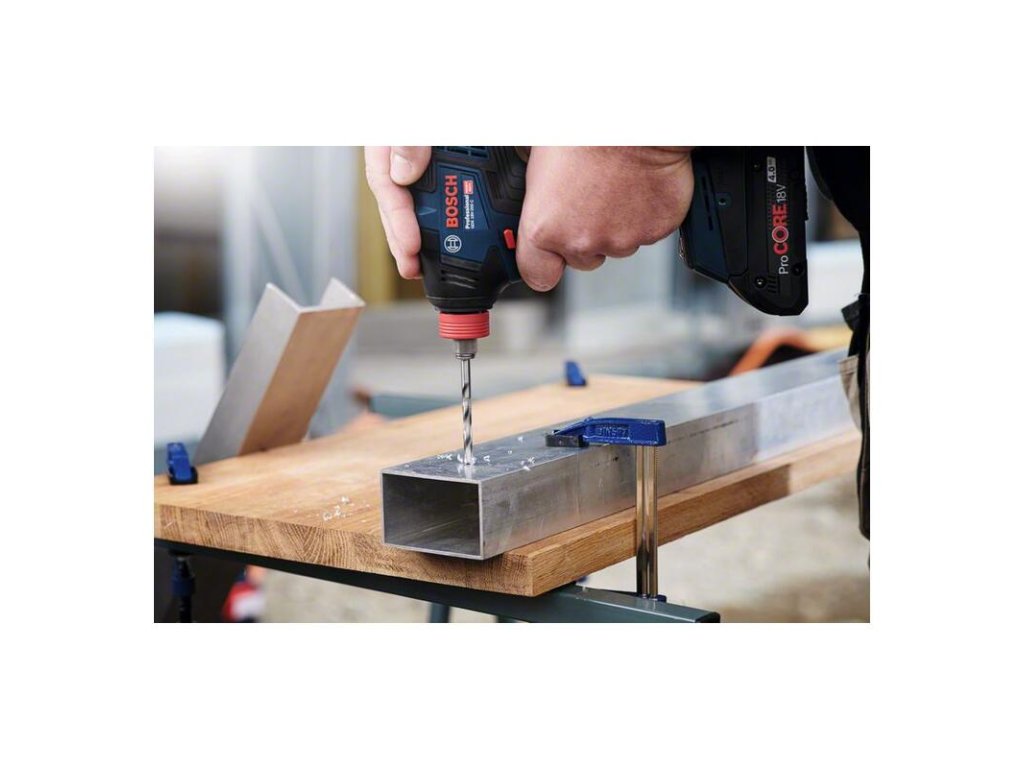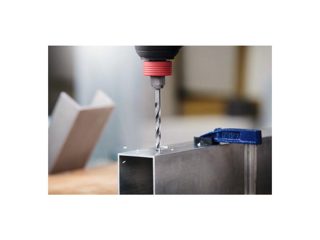 Špirálový vrták HSS PointTeQ so šesťhrannou stopkou umožňuje dosiahnuť rýchle výsledky pri vŕtaní do kovu. Je navrhnutý na vysokorýchlostné vŕtanie, vytvára minimum tepla a minimálne sa opotrebováva. Je vybavený hrotom PointTeQ, ktorý zaisťuje neustálu ostrosť a vysokú trvácnosť. Samostrediaci hrot bráni vychyľovaniu a umožňuje rýchlo a jednoducho začať vŕtať. Jeho brunírovaná drážka zaisťuje rýchle odvádzanie triesok. Na zaistenie ešte vyššej spoľahlivosti ponúka šesťhranná stopka vrtáka stabilitu a pevné uchytenie vrtáka v skľučovadle. Tým sa posilní telo vrtáka a zníži riziko zlomenia vrtáka s priemerom do 6 mm. Špička s krížovým výbrusom špirálového vrtáka HSS PointTeQ umožňuje aktívne rezanie a dokonalé centrovanie. Vrták typu N (uhol skrutkovnice) so 135° špičkou, vyrobený podľa normy DIN 338.