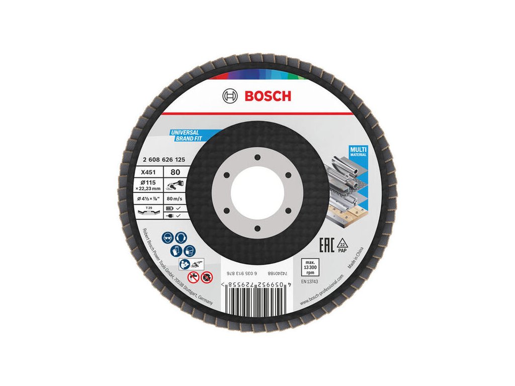 Bosch X451 Lamelový brúsny kotúč 115 mm, P80, Šikmý (T29), Veľké balenie 60 ks