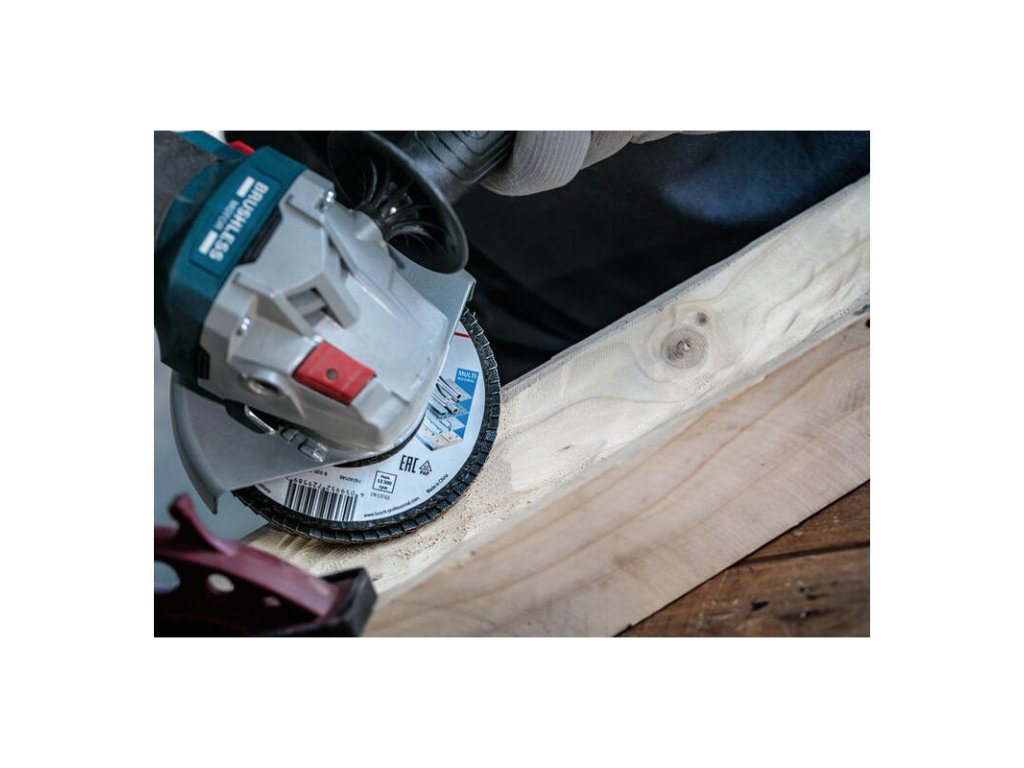 Pre väčšie uhlové brúsky (125 mm) je určený lamelový kotúč Bosch X451 so zrnitosťou 120. Je ideálny na finálne brúsenie a leštenie nerezovej ocele, hliníka a dreva. Rovný tvar T27 uľahčuje prácu na veľkých plochách.