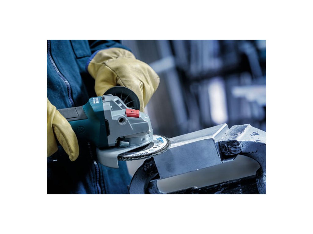 Pre jemné brúsenie veľkých plôch a zvarov použite kotúč Bosch X451 P80 s priemerom 150 mm. Zanecháva hladký povrch pripravený na ďalšiu úpravu. Vhodný na nerez a oceľ.