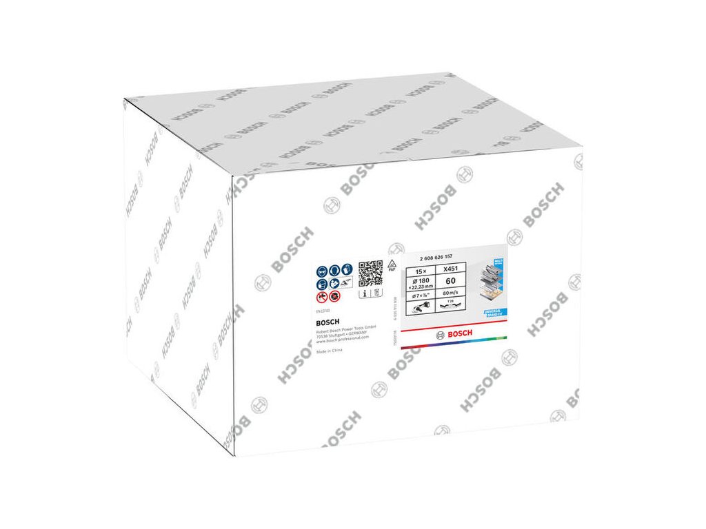 Univerzálny kotúč pre veľké brúsky 180 mm. Bosch X451 P60 zvláda brúsenie veľkých plôch a zvarov s optimálnou rýchlosťou a kvalitou povrchu.
