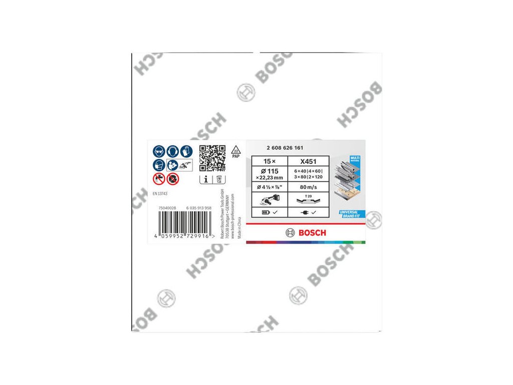 Bosch X451 Sada lamelových kotúčov 115 mm, Šikmé (T29), Mix zrnitostí (40-120), 15 ks, 2.608.626.161