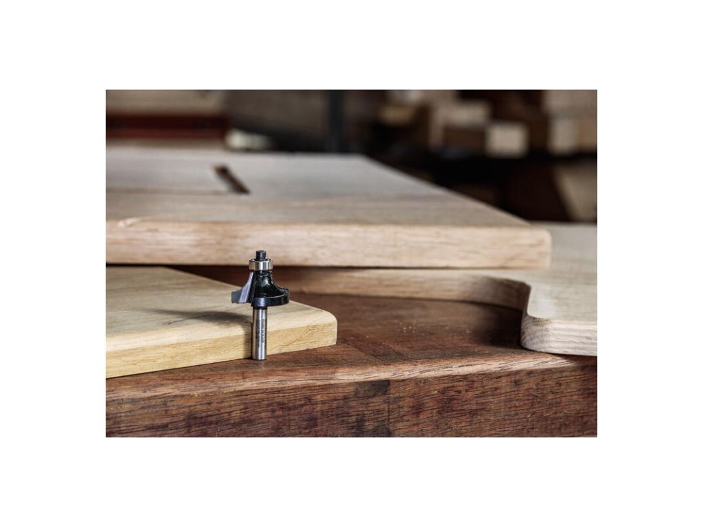Pre jemné "zrazenie" alebo zaoblenie ostrých hrán na nábytku je určená táto fréza Bosch PRO. S malým rádiusom 1,6 mm vytvorí decentný a bezpečný okraj, ktorý je príjemný na dotyk, ale nemení výrazne vzhľad výrobku. Ideálna pre finálnu úpravu.