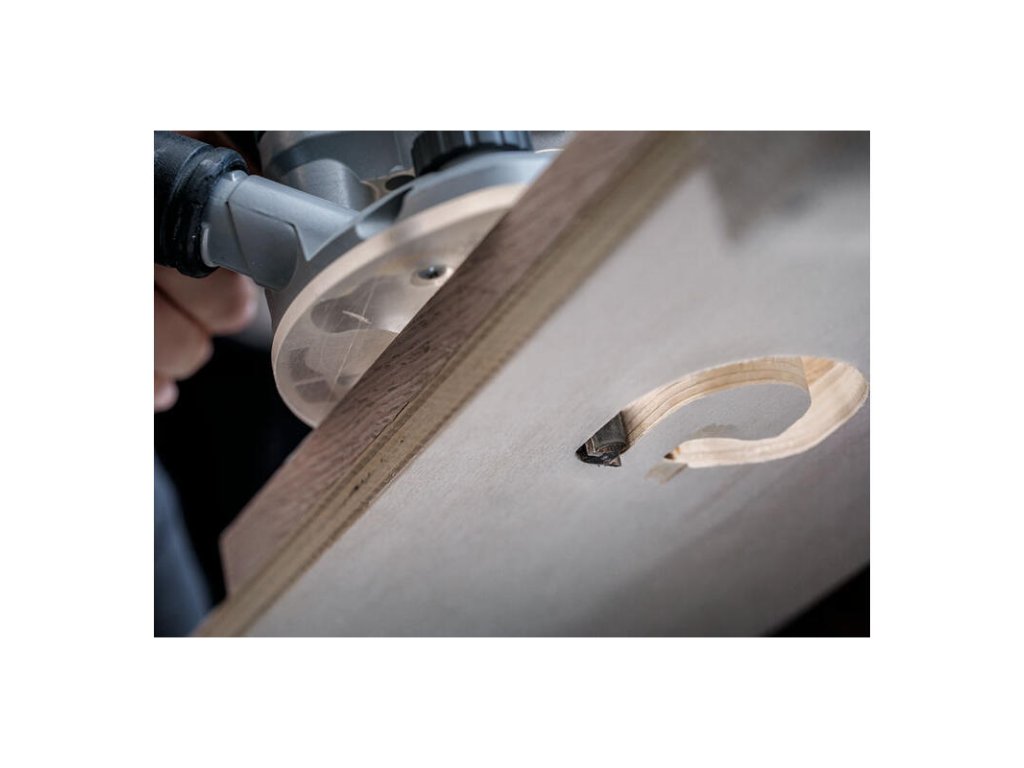 Potrebujete zarovnať hranu v stiesnenom priestore alebo vyrezať otvor pre drez podľa šablóny? Táto úzka zarovnávacia fréza Bosch PRO s priemerom 6,35 mm sa dostane aj do ostrých rohov. Spodné ložisko umožňuje presné vedenie pozdĺž šablóny umiestnenej pod materiálom.