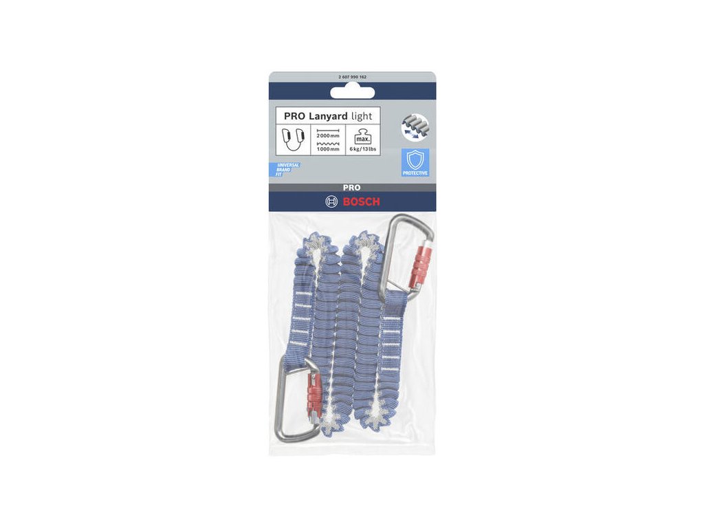 Spoľahlivé riešenie pre zaistenie náradia pri práci vo výškach. Tento model šnúrky Bosch PRO je vybavený dvoma karabínami, čo umožňuje rýchle a flexibilné pripojenie kotevného bodu aj samotného nástroja. S nosnosťou do 6 kg je ideálna pre bežné ručné náradie.