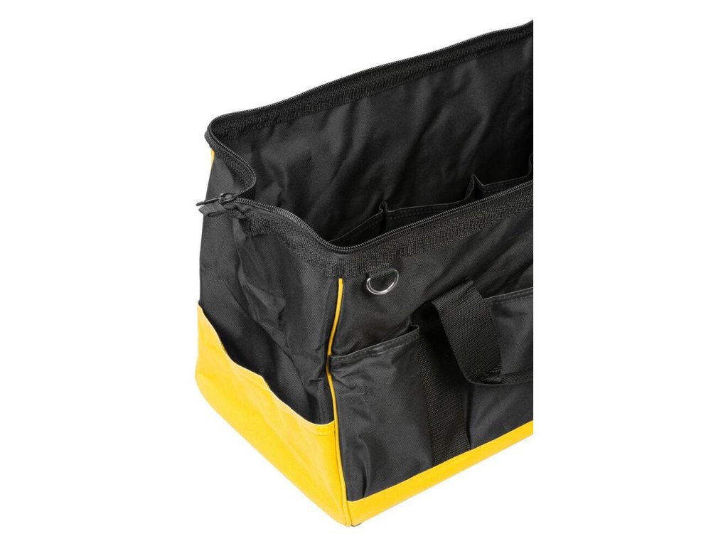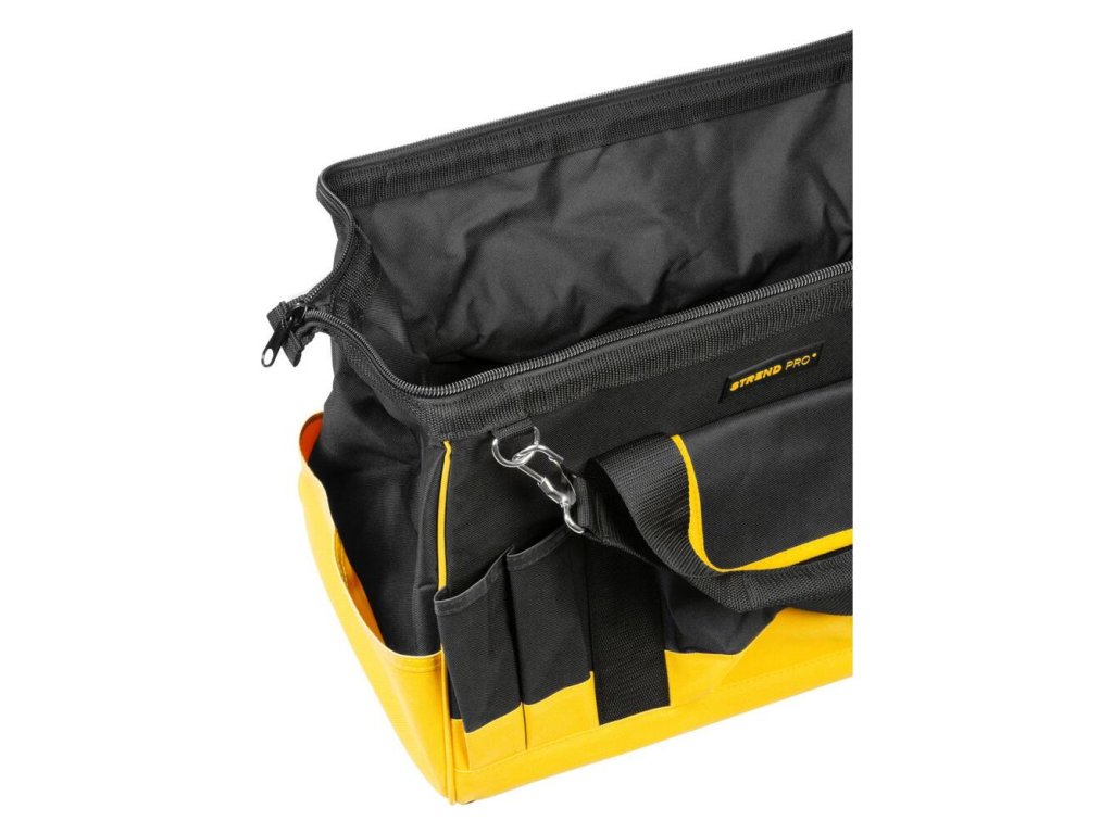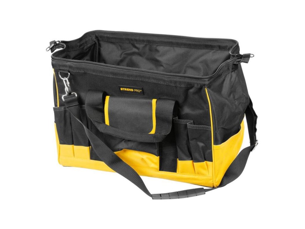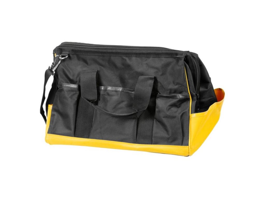 Textilná brašňa na náradie zatvárateľná so zipsom a ramenným popruhom.