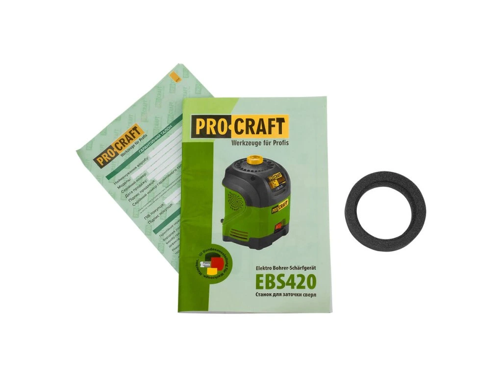 Balenie obsahuje brúsku na vrtáky Procraft EBS420 a brúsny kotúč.