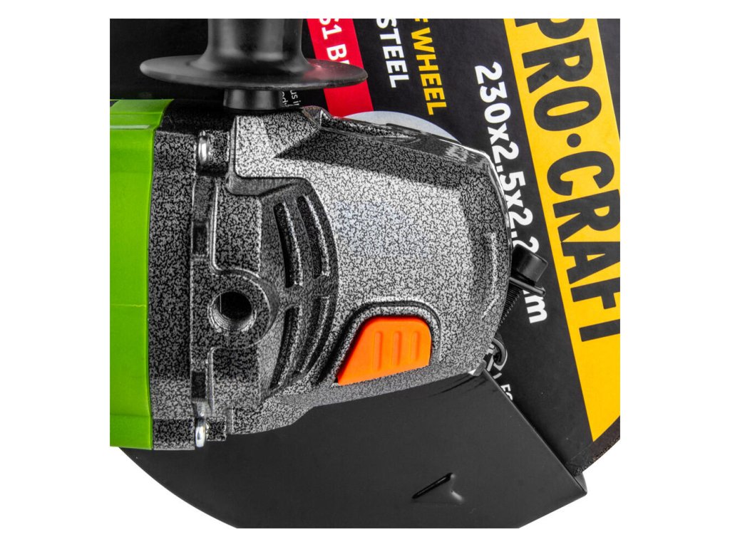 Uhlová brúska Procraft PW2550Uhlová brúska Procraft PW2550 je výkonný stroj určený na rezanie, brúsenie a leštenie rôznych materiálov. S príkonom 2000 W a otáčkami až 6500 min⁻¹ zabezpečuje efektívnu a rýchlu prácu. Vďaka priemeru kotúča 230 mm je ideálna na náročné úlohy.Kľúčové vlastnosti:Výkonný motor (2000 W) – zvládne aj väčšiu záťaž.Otočné madlo – umožňuje jednoduché prispôsobenie polohy pre pohodlnejšiu prácu.Horčíkový kryt prevodovky – zaisťuje dlhú životnosť a odolnosť.Prachová ochrana – predlžuje životnosť motora a znižuje opotrebovanie.Technické údaje:Príkon: 2000 WOtáčky: 6500 min⁻¹Priemer kotúča: 230 mmHmotnosť: cca 5 kgObsah balenia:Uhlová brúska Procraft PW2550Uhlíkové kefkyMontážny kľúčĎalšie vlastnosti:Dvojité lakovanie motora pre lepšiu ochranu proti prachu a vlhkosti.Ventilačný systém – efektívne odvádzanie prachu a chladenie vzduchom pre dlhšiu životnosť.Možnosť aretácie vypínača – pre bezpečnejšie a pohodlnejšie dlhodobé používanie.Tento model je ideálny na profesionálne aj poloprofesionálne použitie, poskytuje vysoký výkon a dlhú životnosť aj pri intenzívnom zaťažení.
