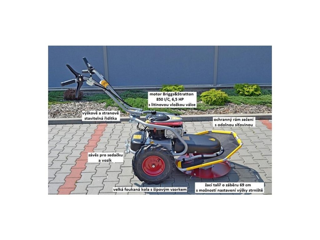 Benefit pre užívateľa: Panter FD2 je navrhnutý tak, aby ste pri práci mohli sedieť na prípojnej sedačke. O prenos sily sa stará robustný reťazový prevod a šneková prevodovka českej výroby s bronzovým kolesom, čo zaručuje extrémnu odolnosť. Vibrácie motora sú tlmené štyrmi silentblokmi, takže aj pri dlhom kosení nebudete cítiť únavu v rukách. Veľké fúkané kolesá 420 mm so šípovým vzorom zaistia prejazd aj v tom najťažšom teréne.Hlavné vlastnosti a výhody kosačka Panter FD2 RZS 70K