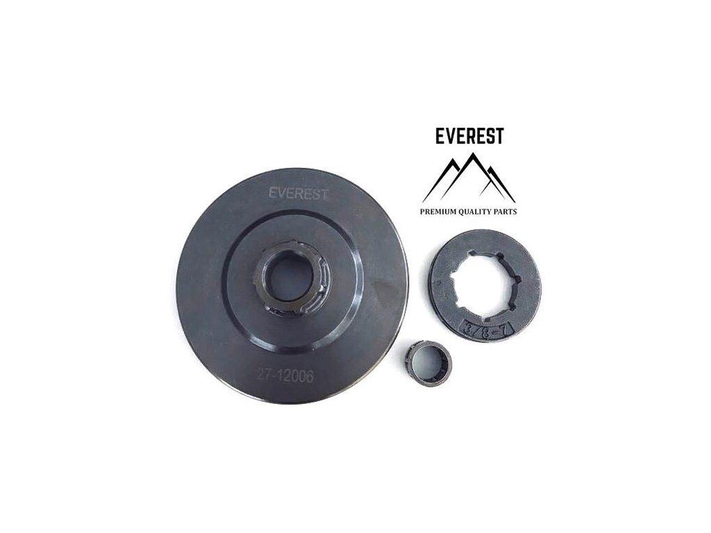 Bubon spojky s delením 3/8 a 7 zubami je dôležitý prevodový diel určený pre čínske motorové píly s objemom 38cc. Zaisťuje správny prenos sily motora na reťaz. Tento bubon je od značky EVEREST a má zuby ako samostatný prstenec.