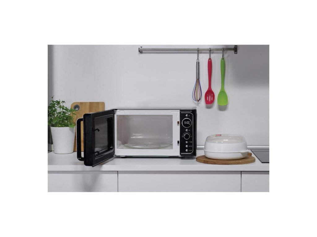 - Voľne stojaca mikrovlnná rúra s grilom DivÓ v čiernom prevedení s objemom 20 l, mechanickým ovládaním a 6 stupňami výkonu.