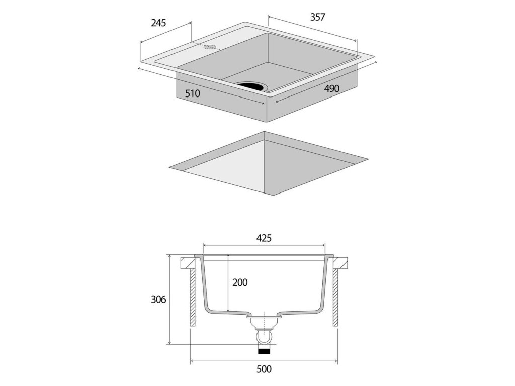 - Rozmery vaničky (d x š x h): 357 x 425 x 200 mm