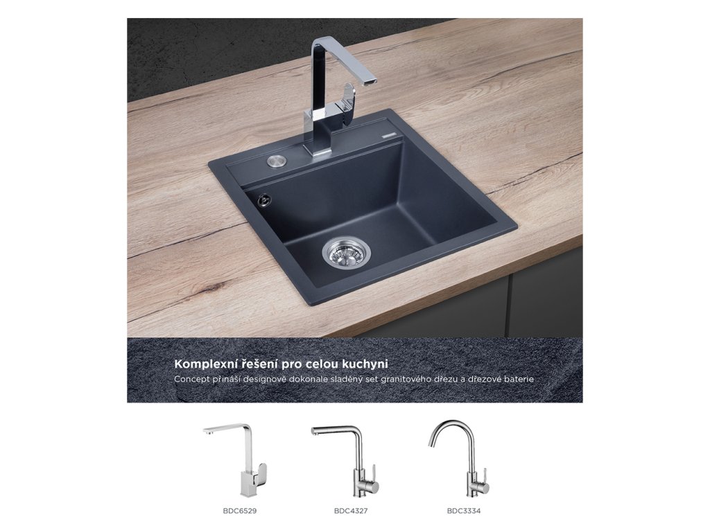 Atraktívny vzhľad, kvalitné spracovanie, vysoká odolnosť a ľahká údržba, to sú hlavné predností granitových drezov Concept. Perfektne zapadnú do každej kuchyne a v kombinácii s batériami Concept tvorí dokonale zladený celok. Model DG00C50dg je súčasťou designovej rady CUBIS, ktorú spájajú moderné hranaté línie a v kuchyni pôsobí veľmi nadčasovým a elegantným dojmom.