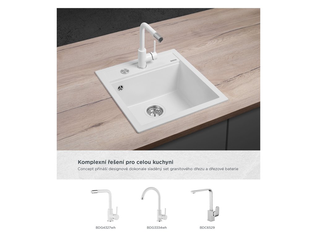 Atraktívny vzhľad, kvalitné spracovanie, vysoká odolnosť a ľahká údržba, to sú hlavné prednosti granitových drezov Concept. Perfektne zapadnú do každej kuchyne a v kombinácii s batériami Concept tvoria dokonale zladený celok. Model DG00C50wh je súčasťou designovej rady CUBIS, ktorú spájajú moderné hranaté línie a v kuchyni pôsobí veľmi nadčasovým a elegantným dojmom.