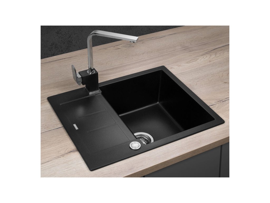 Granitový drez s odkvapom čiernej farby. Rozmery (d x š x h): 500 x 860 x 306 mm