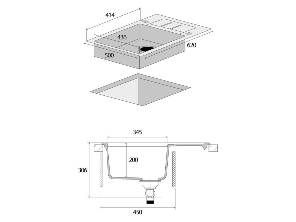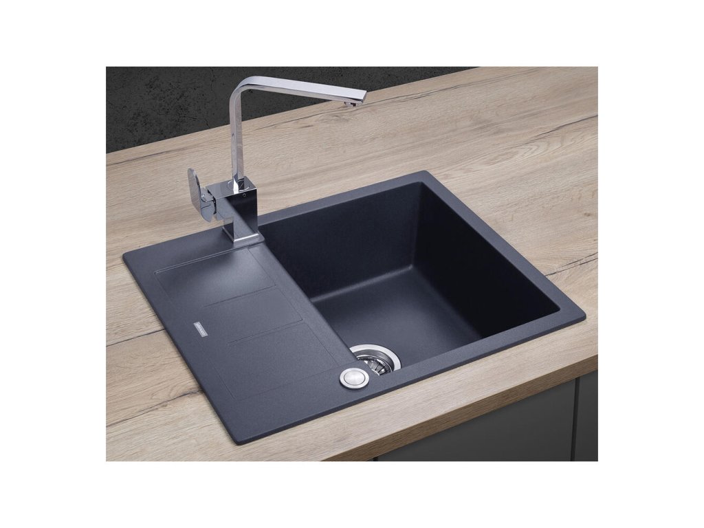 Granitový drez s odkvapom čiernej farby. Rozmery (d x š x h): 500 x 860 x 306 mm