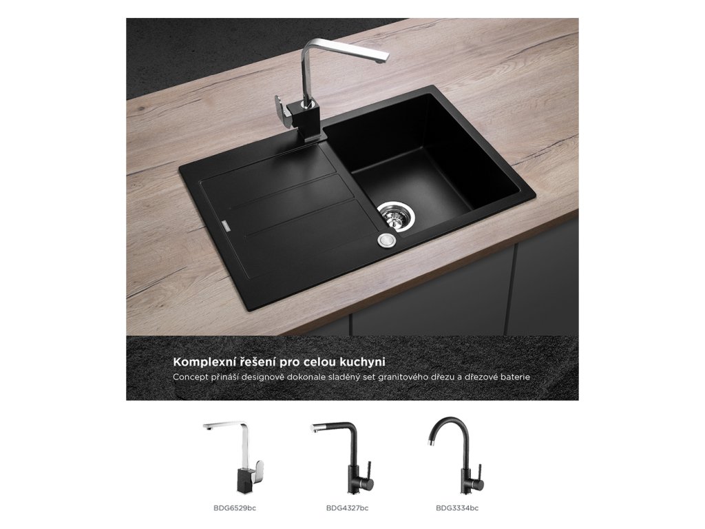 Atraktívny vzhľad, kvalitné spracovanie, vysoká odolnosť a ľahká údržba, to sú hlavné prednosti granitových drezov Concept. Perfektne zapadnú do každej kuchyne a v kombinácii s batériami Concept tvoria dokonale zladený celok. Model DG10C45bc je súčasťou designovej rady CUBIS, ktorú spájajú moderné hranaté línie a v kuchyni pôsobia veľmi nadčasovým a elegantným dojmom.