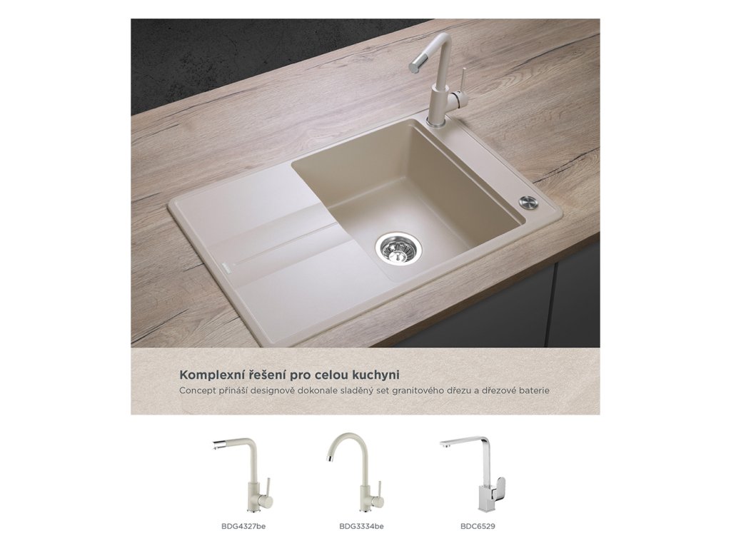Atraktívny vzhľad, kvalitné spracovanie, vysoká odolnosť a ľahká údržba, to sú hlavné prednosti granitových drezov Concept. Perfektne zapadnú do každej kuchyne a v kombinácii s batériami Concept tvoria dokonale zladený celok. Model DG10N50be je súčasťou designovej rady NOBLES, ktorú spájajú moderné línie s prepracovanými detailmi. V kuchyni pôsobia veľmi nadčasovým a elegantným dojmem.