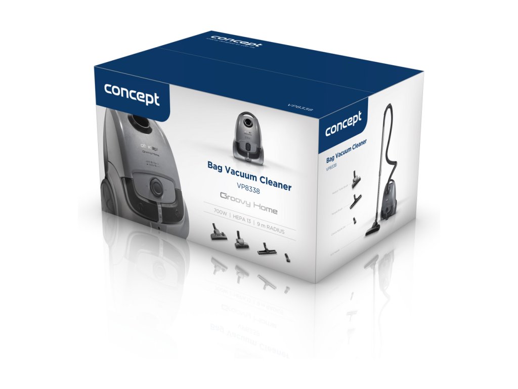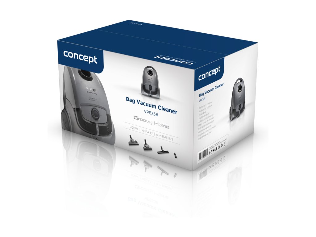 Vreckový vysávač Groovy Home VP8338 je osadený vysoko účinným ECO motorom s príkonom 700 W, ktorý má zásluhu na vynikajúcom sacom výkone. Saciu silu môžete jednoducho upraviť vďaka elektronickej regulácii. Perfektne si poradí s upratovaním tvrdých podláh aj kobercov. Je skvelým pomocníkom pre bežné upratovanie a vďaka bohatému príslušenstvu ho ocenia aj majitelia chlpatých miláčikov. Umývateľný HEPA filter 13 zachytí aj tie najjemnejšie prachové častice, takže je vhodný aj pre alergikov a astmatikov.