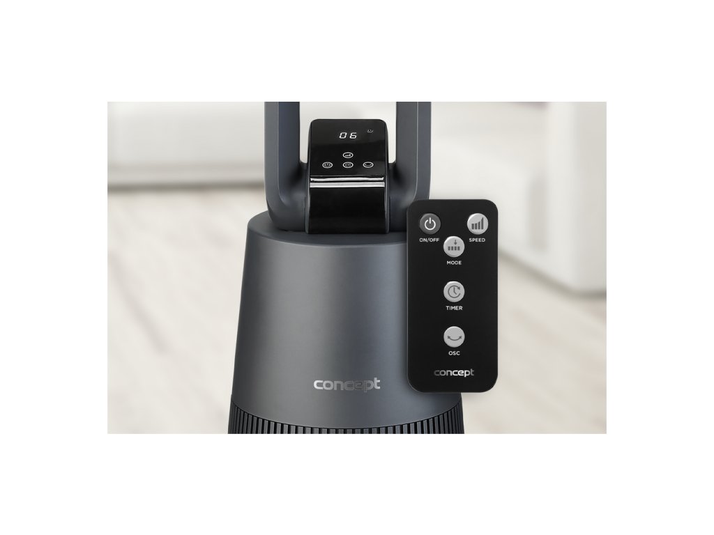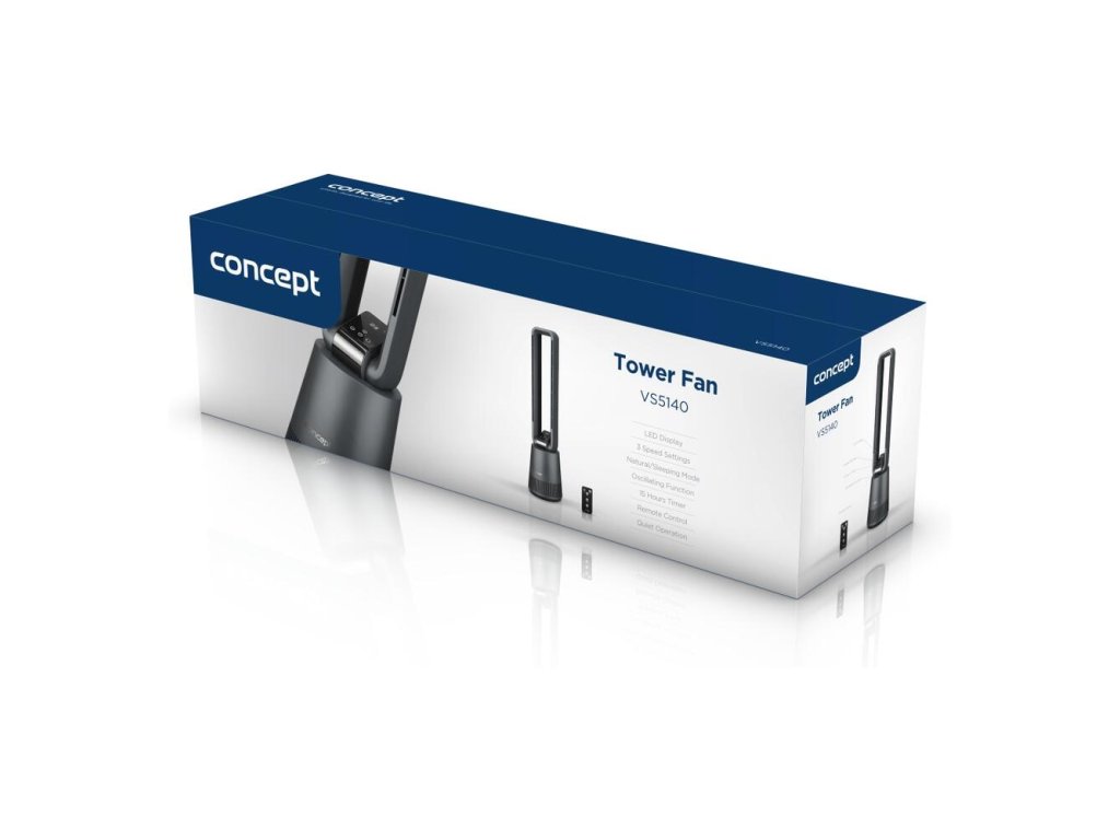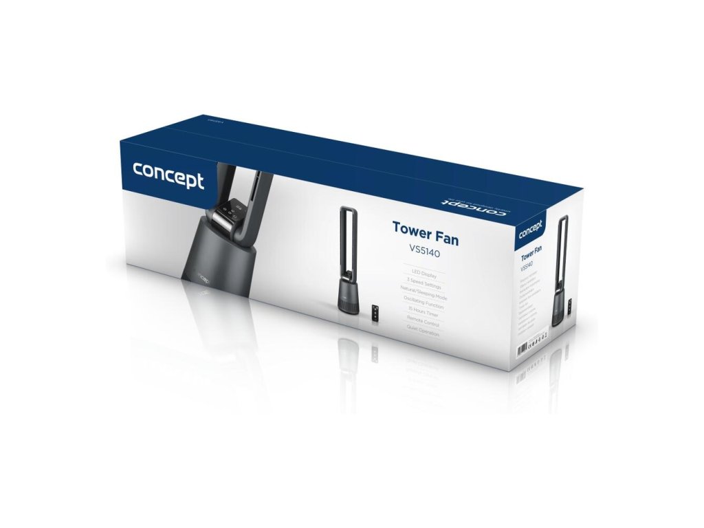 Stĺpový ventilátor Concept VS5140 prinesie príjemné ochladenie počas horúcich letných dní. Vyniká elegantným designom, vďaka ktorému sa hodí do každej modernej domácnosti. Veľkou prednosťou je jeho moderné bezlopatkové prevedenie, čo ocenia predovšetkým domácnosti s malými deťmi, pretože eliminuje nebezpečie úrazu. Ventilátor je vybavený stabilnou základňou, ktorá zaisťuje maximálnu bezpečnosť počas prevádzky a zabraňuje nechcenému prevrhnutiu. S príkonom iba 50 W sa radí medzi veľmi úsporné spotrebiče.