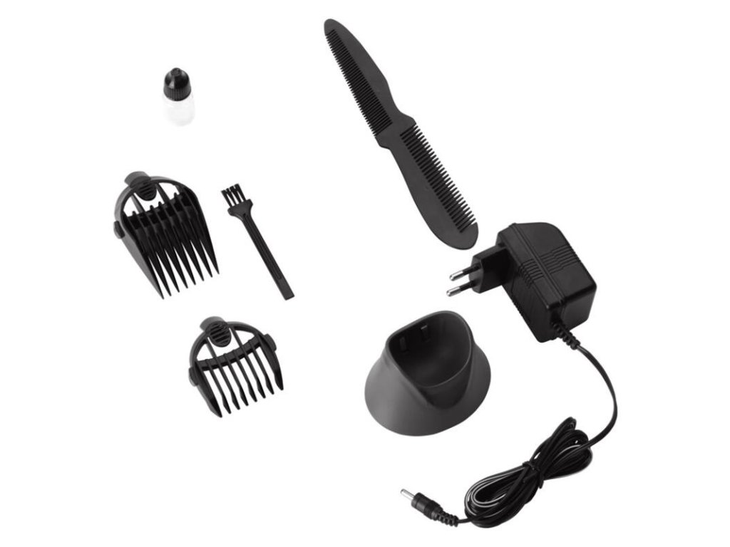 - Príslušenstvo: nabíjací stojan, olej na premazávanie, hrebeň, štetček, nabíjací adaptér