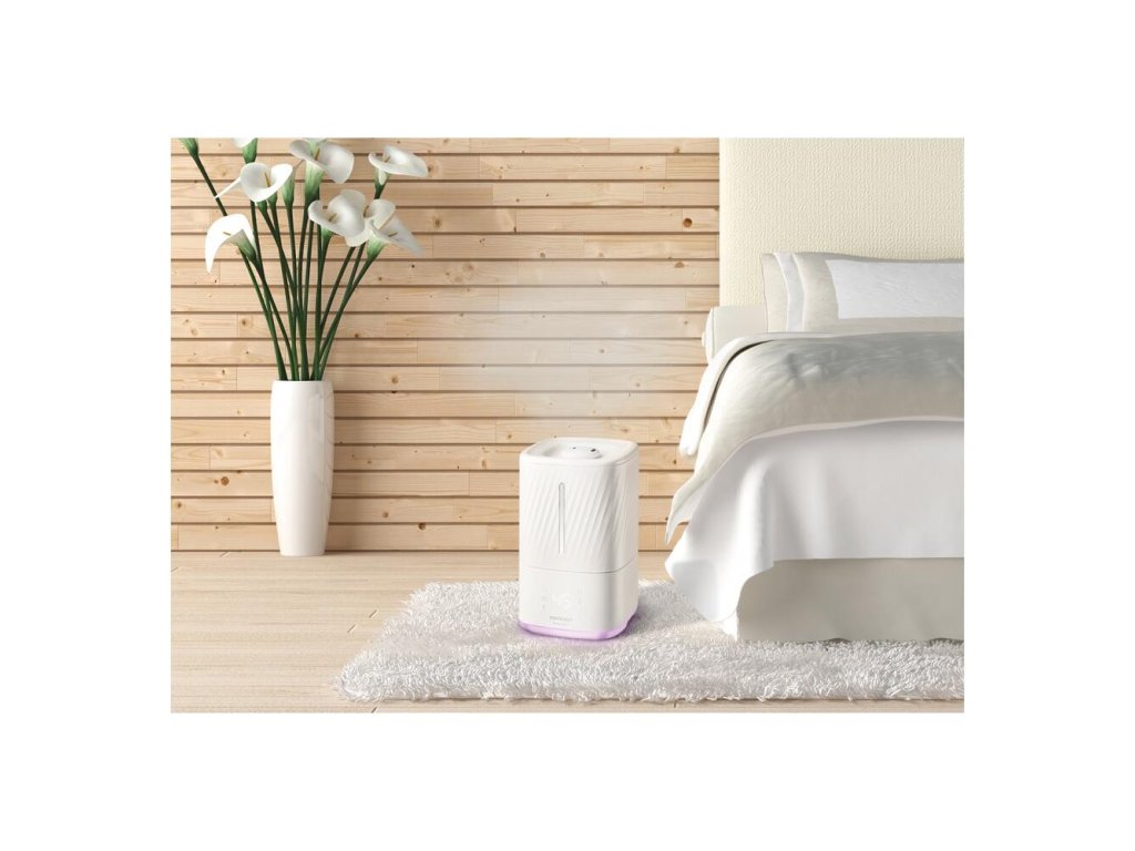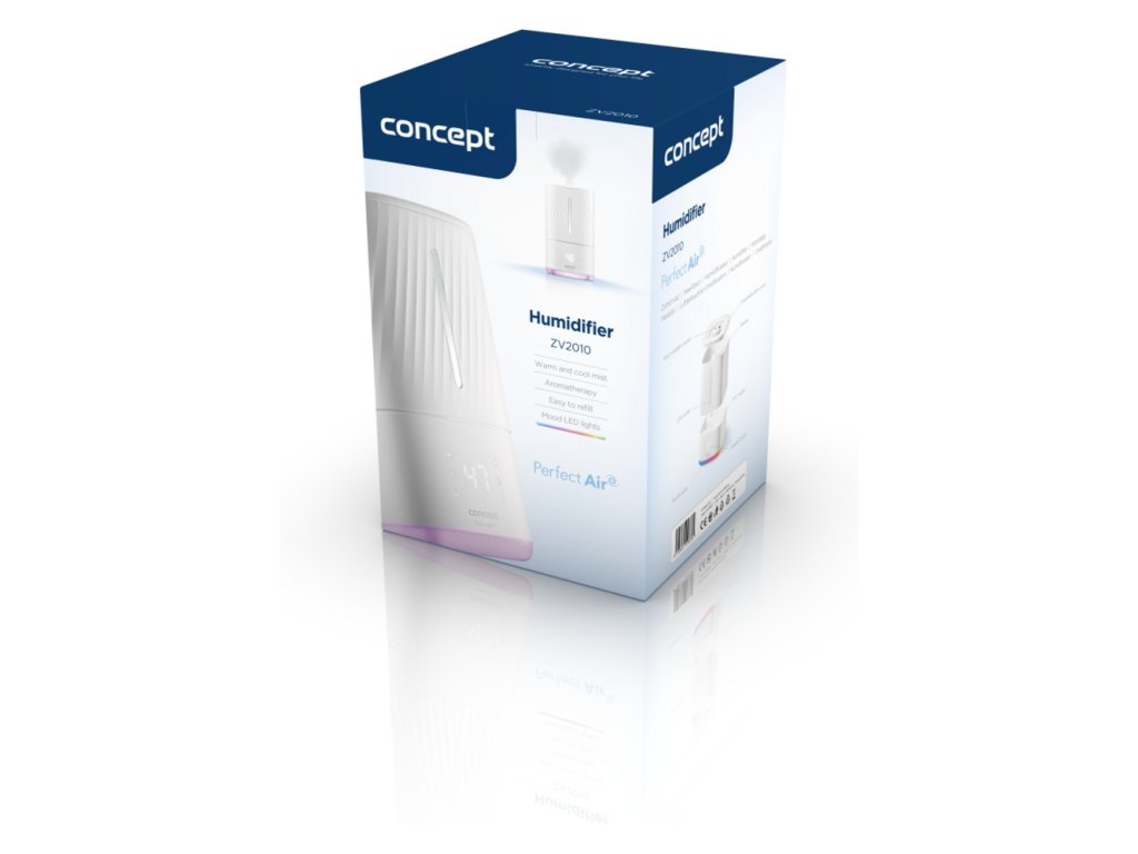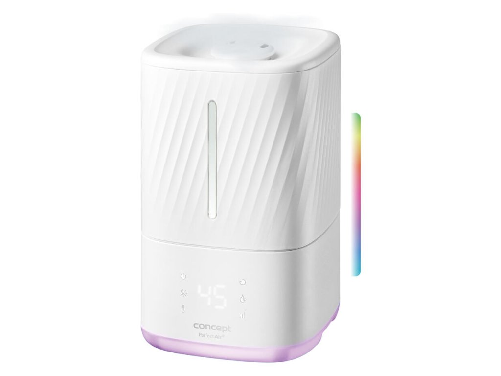 Zvlhčovač vzduchu ZV2010 z rady Perfect Air je spojením zvlhčovača a aroma difuzéra. V kombinácii s účinným filtrom, ktorý zachytí baktérie a minerály obsiahnuté vo vode, vám pomôže v domácnosti nastaviť ideálne prostredie pre vaše zdravé dýchanie. Moderný design podčiarkne aj farebné ambientné podsvietenie, ktoré ponúka širokú škálu farieb. Môžete si zafixovať jednu, alebo ponechať všetky, aby sa postupne menili.