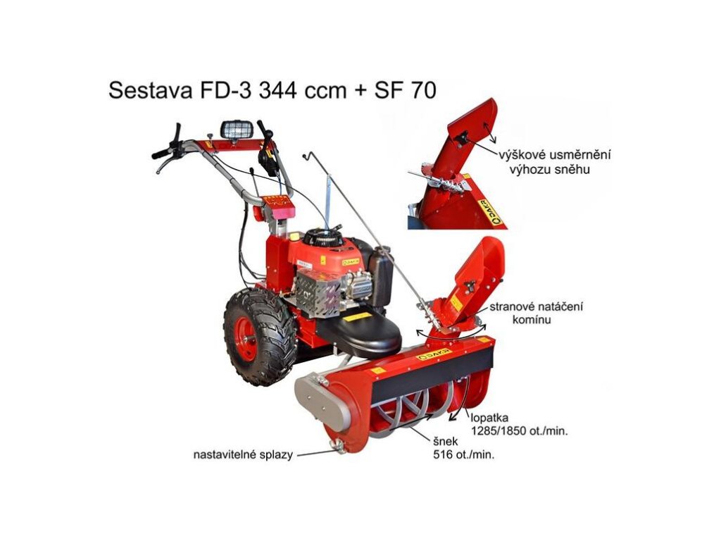 Adaptér so záberom 69 cm je určený predovšetkým na odpratanie čerstvo napadaného snehu, ale zvládne aj premrznutý sneh. Naša snehová fréza má pomalobežný slimák aj rýchlobežnú lopatku v jednej osi, čo prináša skrátenie stroja a teda lepšiu manipulovateľnosť. Vďaka nastaviteľným otáčkam lopatky môžete navyše optimálne upravovať parametre stroja. Pre ľahký sneh nastavíte rýchlejšie otáčky lopatky a tým zvýšite dĺžku odhodu, pri ťažkom snehu otáčky znížime a šetríme tým výkon motora. Vyletujúci sneh je možné odhadzovať prakticky kamkoľvek pred alebo vedľa stroja vďaka natáčaciemu komínu. Adaptér odporúčame osadzovať na pohonné jednotky so spiatočkou (FD2H, FD3). Snehová fréza je možné agregovať aj spolu s pohonnou jednotkou FD5.