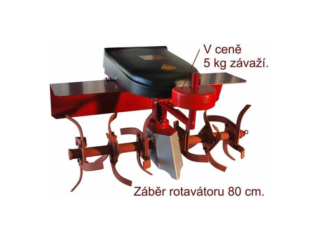 Rotavátor je zostavený zo 6 hviezdic s priemerom 30 cm a záberu 80 cm, po zúžení na 4 hviezdice je záber 54 cm. Vlastné sprevodovanie adaptéra sa deje prevodovkou v pomere 1:7,5, klinový remeň slúži na prenos otáčok, nikolv na vlastné sprevodovanie.
