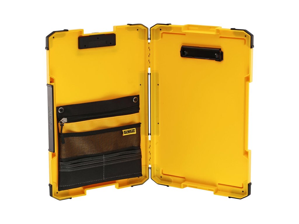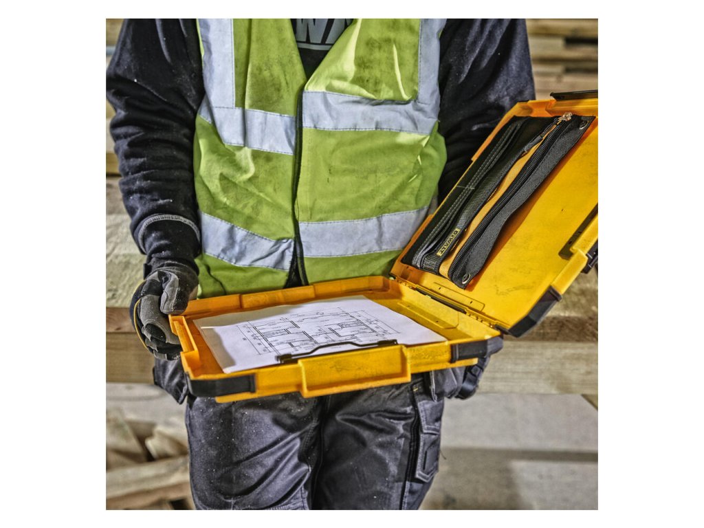 - Písacia podložka DeWALT DWST82732-1 s vnútorným úložným priestorom je ideálná pre prenášanie dokumentov (napr. Predstavenie cenových ponúk a fakturácie) alebo uloženie mobilného telefónu v bezpečí pred poškodením.