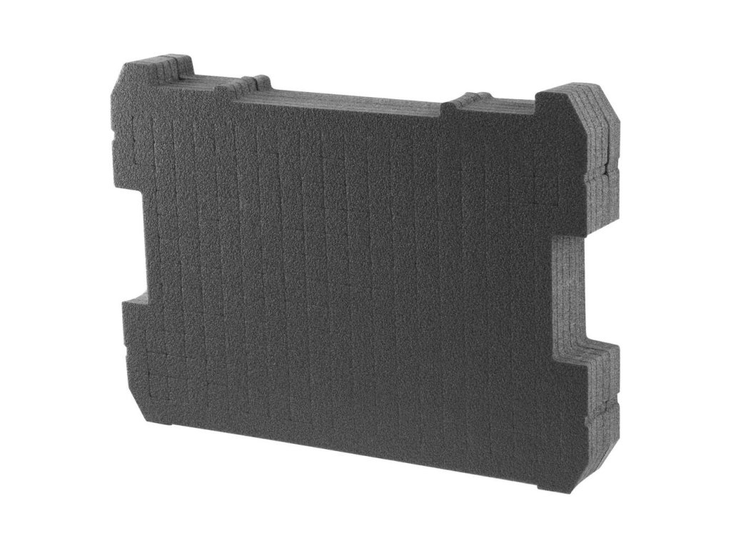 - Vložka obdĺžnikového tvaru sa ľahko umiestni vo vašom boxe na elektrické náradie a vhodne vyplní jeho priestor.