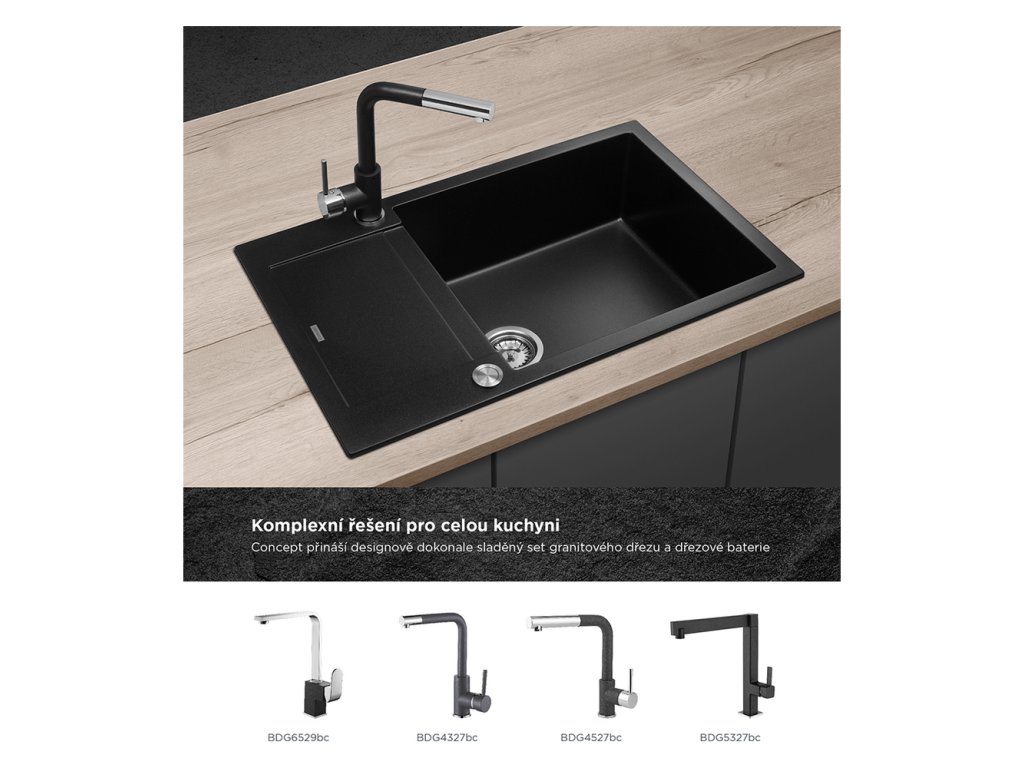 Atraktívny vzhľad, kvalitné spracovanie, vysoká odolnosť a ľahká údržba, to sú hlavné prednosti granitových drezov Concept. Perfektne zapadnú do každej kuchyne a v kombinácii s batériami Concept tvoria dokonale zladený celok. Model DG05L60bc je súčasťou designovej rady LINEA, ktorú spájajú moderné hranaté línie a v kuchyni pôsobí veľmi nadčasovým a elegantným dojmom.