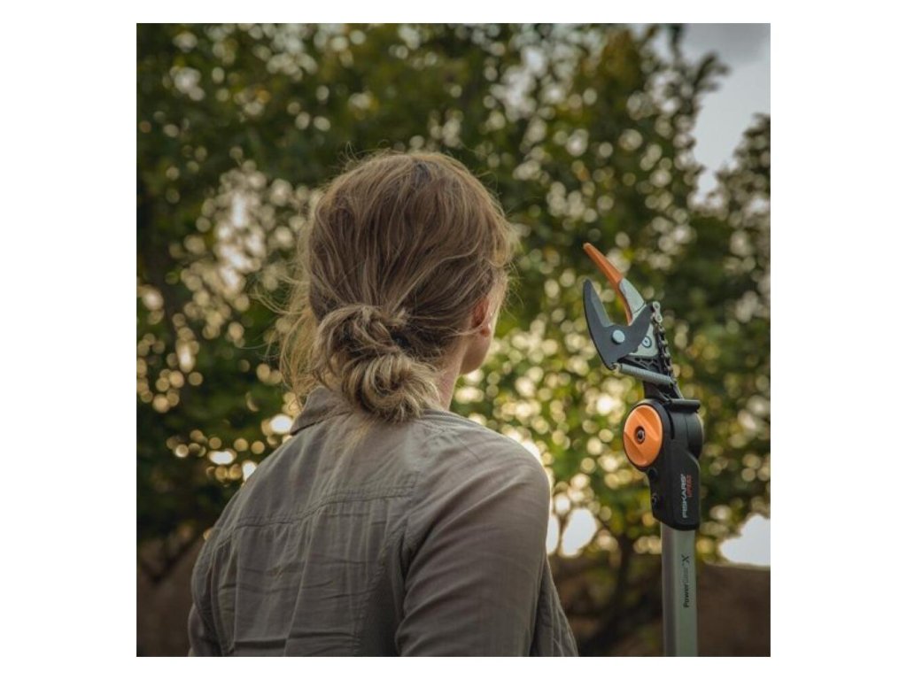 Nastaviteľná hlava nožníc a jednoduchý strižný mechanizmus zaisťujú rýchle a bezpečné strihanie vetiev z veľkej vzdialenosti.