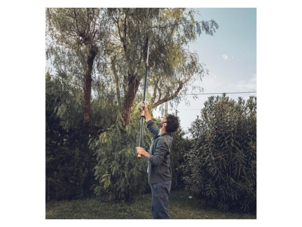 Teleskopická násada je nastaviteľná od 2,5 do 4 metrov, maximálny dosah nožníc je 6 metrov