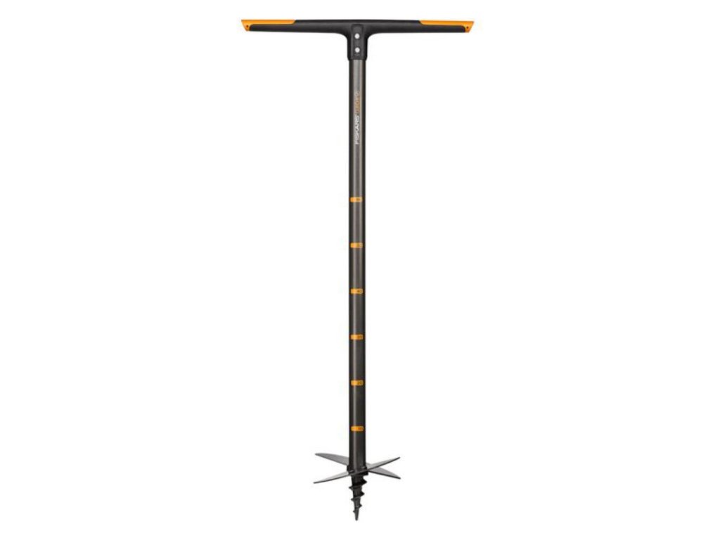 QuikDrill™ Fiskars není konstruován tradičním způsobem s dlouhou spirální šroubovicí ale má dvě optimálně nakloněné čepele z bórové oceli upevněné kolem ostrého hrotu.Tento design umožňuje pronikat i do tužších půd s menším odporem a brání mačkání země.