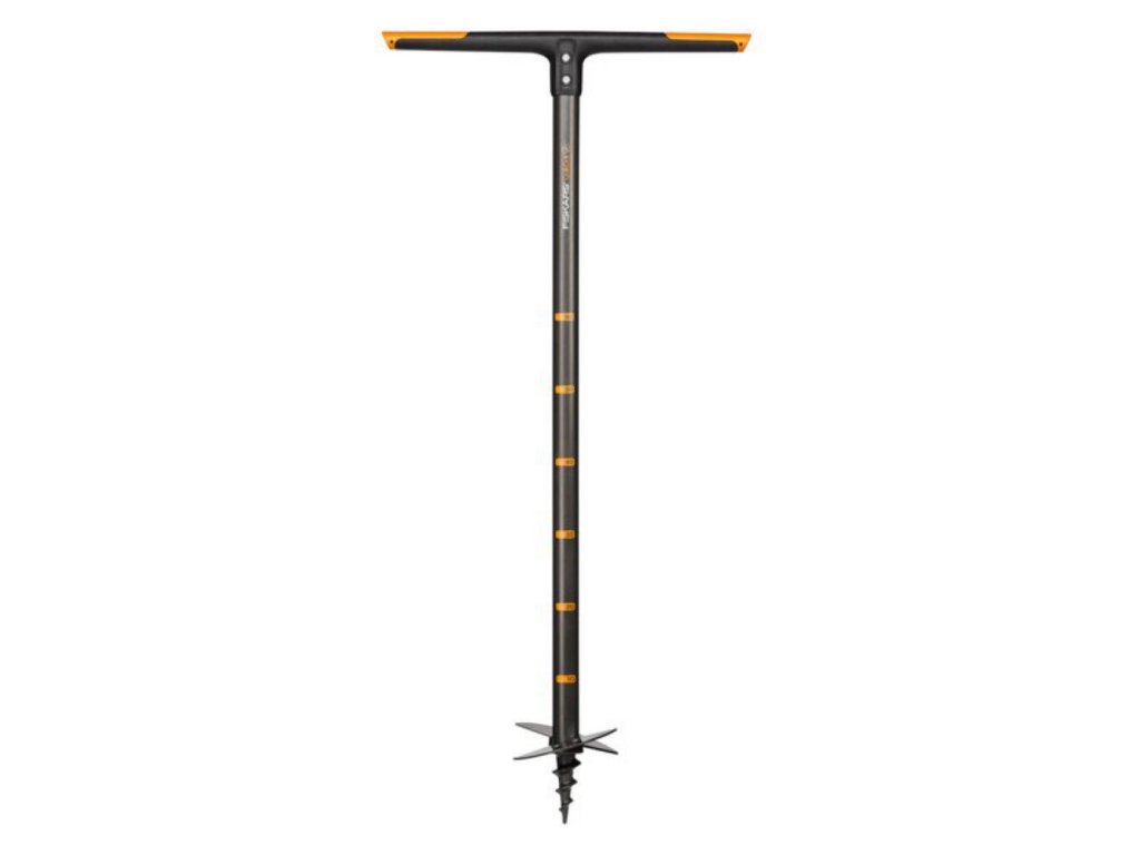 QuikDrill™ Fiskars není konstruován tradičním způsobem s dlouhou spirální šroubovicí ale má dvě optimálně nakloněné čepele z bórové oceli upevněné kolem ostrého hrotu.Tento design umožňuje pronikat i do tužších půd s menším odporem a brání mačkání země.