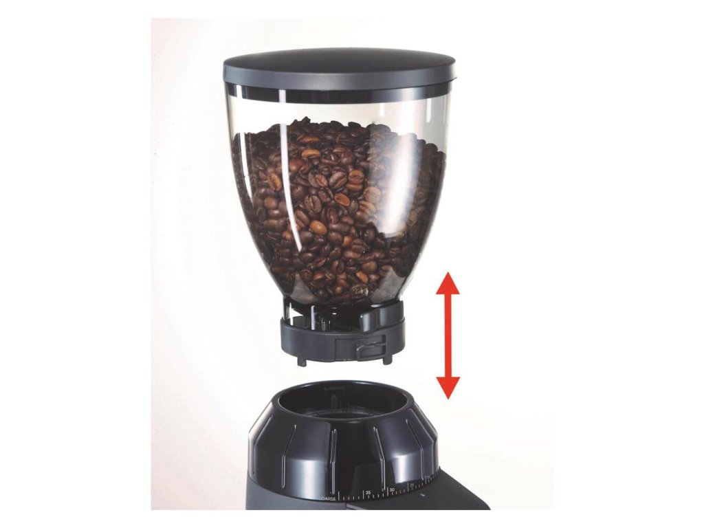 Mlynček na kávu s príkonom 128 W je vyrobený z vysoko kvalitnej nerezovej ocele. Mlynček disponuje nastavením jemnosti mletia 1 - 40. Zásobník s krytom je vhodný na 350 g mletej kávy. Nechýba odnímateľná gumená základňa mlynčeka a kefka na čistenie.