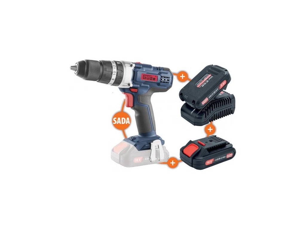 - Aku vŕtací skrutkovač s príklepom GÜDE BSB 18-201-30K s akumulátormi a nabíjačkou.