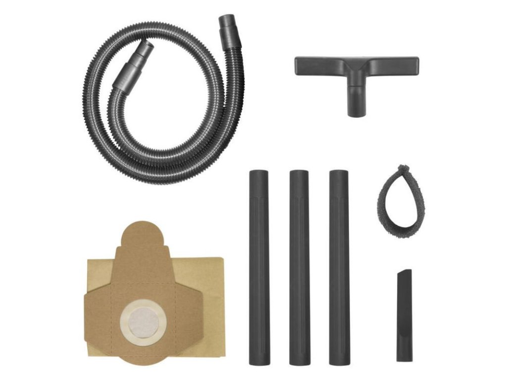 Vysávač s nehrdzavejúcou nádobou z ušľachtilej ocele, 3-dielna sacia rúra, integrovaný držiak na príslušenstvo, 4 otočné kolieska. Príslušenstvo: sacia hadica 1,5 m, 3-dielna plastová sacia rúra (98 cm), 1 podlahová hubica, 1 hubica na špáry, 1 penový filter, 1 papierové filtračné vrecko.